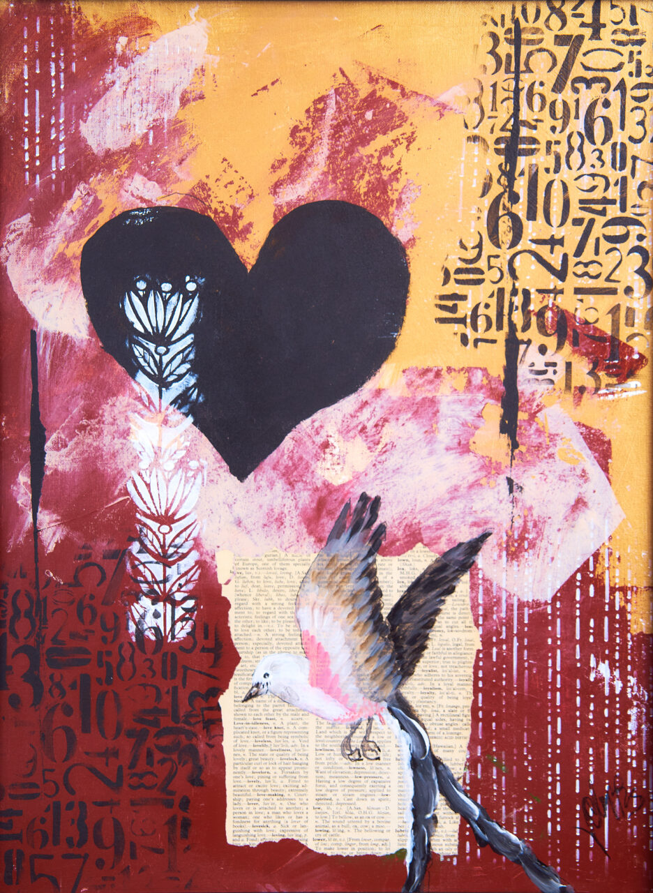 Vicki Larson Clapp is a mixed media artist who works in watercolor, collage and more. Her pieces, small and large, are all original works of art. Her pieces bring together memories and discoveries, her favorite things and textures, all of which are bonded together with color and a sense of joy.